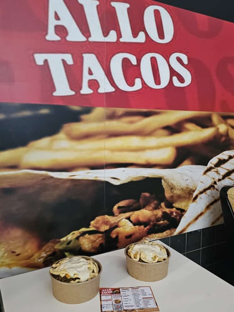 Chez Allo Tacos vous avez le choix entre différentes tailles de tacos et de bowls à composer vous-même, choisissez votre viande, garniture et sauce selon votre envie du moment !
